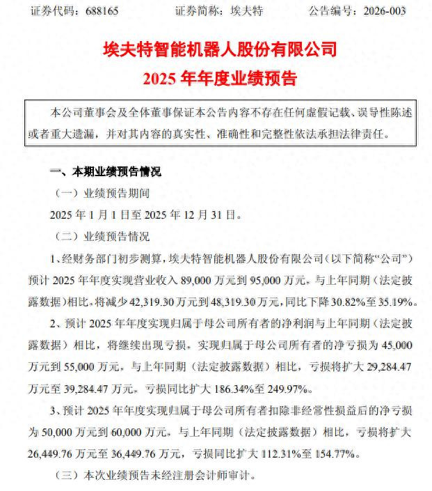 公司称,业绩亏损扩大是因欧洲当地汽车厂商缩减投资规模,致使公司境外系统集成业务收入整体下降超50%,叠加海外业务商誉及客户关系出现减值迹象并计提相应损失。同时,公司加大具身智能领域研发投入、部分行业头部战略性客户订单价格较低等因素,进一步影响了当期利润。